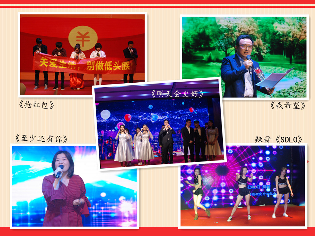 一首《隆重登場(chǎng)》的獨(dú)唱,有如釋放能量般的聲勢(shì);舞蹈配合朗誦的《中國(guó)字畫》,在絲綢袖口輕輕卷起,帶入了深遠(yuǎn)靈動(dòng)的境界;獨(dú)唱《稻香》,把氣氛帶入了溫馨和甜蜜的童年回憶中;《朋友》手語(yǔ)表演,一張張回放的足跡,更是深情流露了支持和陪伴;王董事長(zhǎng)和王建華副總經(jīng)理攜手唱起了《真心英雄》,“把握生命里的每一分鐘,全力以赴我們心中的夢(mèng)”唱響對(duì)夢(mèng)想的堅(jiān)持和希望;一支《愛(ài)的城堡》舞蹈,“啦啦啦……”,靈動(dòng)生機(jī);幽默詼諧的《博濟(jì)贊歌》三句半表演句句入人心,這是齊聚羊城的喜悅和溫暖,共追夢(mèng)的堅(jiān)定;積極輕松的《Good time》舞蹈舞動(dòng)了觥籌交錯(cuò)的喜悅;《博濟(jì)醫(yī)藥的日子》唱出了每個(gè)博濟(jì)醫(yī)藥人的心聲,對(duì)奮力騰飛的誓言的堅(jiān)持和沉淀;柔情合唱的《我只在乎你》,飽滿爵士藍(lán)調(diào)氛圍回蕩起伏;爆笑小品《搶紅包》將大家引入了搶紅包的歡呼中;一首獨(dú)唱《至少還有你》,動(dòng)聽(tīng)抒情;李強(qiáng)總經(jīng)理以飽滿的熱情朗誦《我希望》,尋找“微光”的激情和堅(jiān)持,在雀躍中用美聲獻(xiàn)歌一首,強(qiáng)有力且極具感染力;一支辣舞《SOLO》,傲氣與不羈,青春活力,嗨動(dòng)現(xiàn)場(chǎng);深情合唱的《明天會(huì)更好》,充滿著青春的驕傲……(晚宴節(jié)目精彩剪影在最下方哦?。?/span>